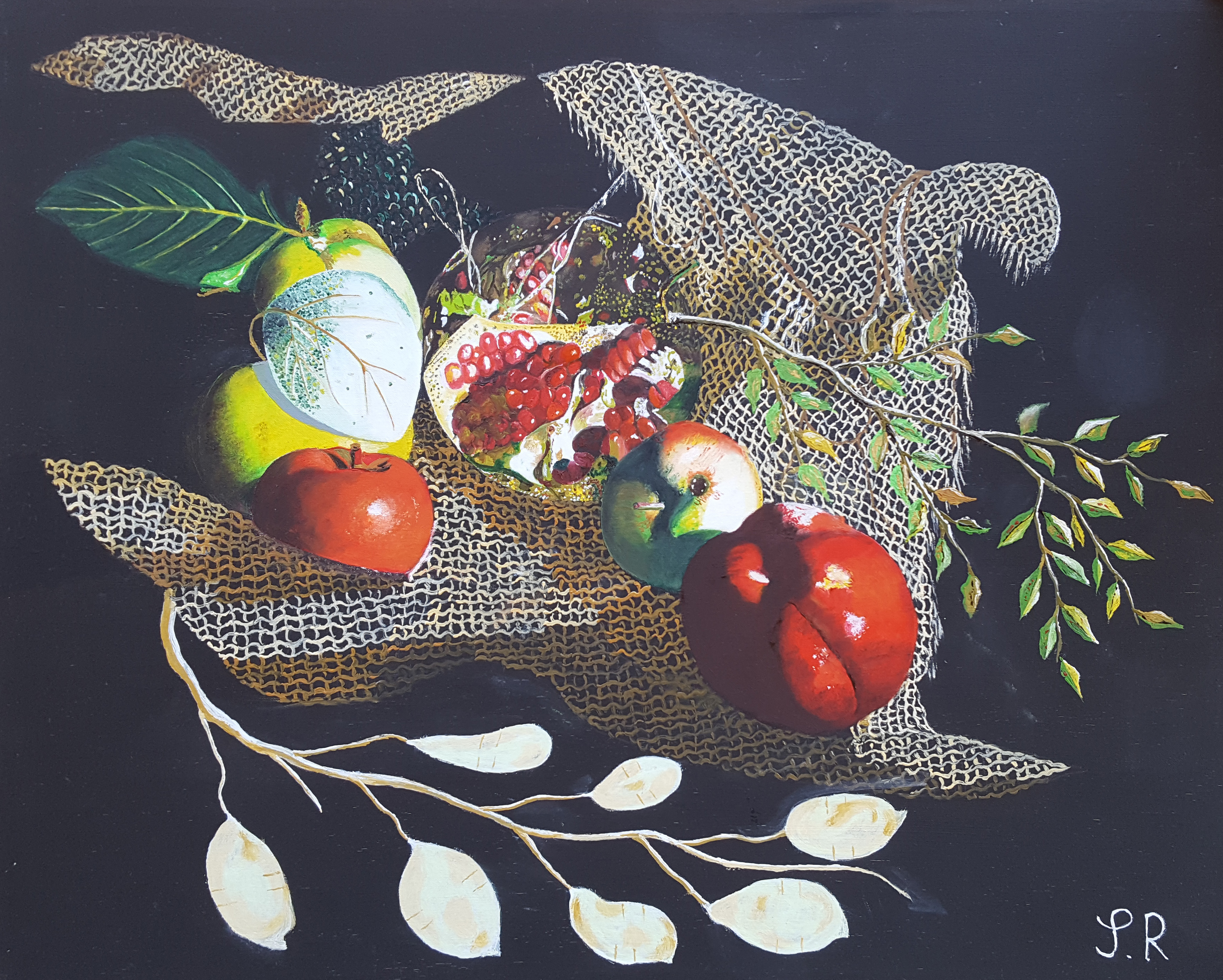 Natura morta con mele e melograno